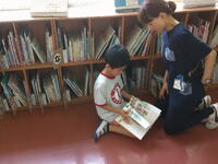 図書室では稲越小学校の学校司書の先生が読み聞かせをしてくれて、それから各自好きな本を探して読みました。