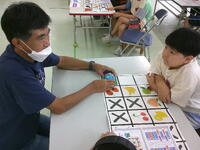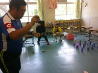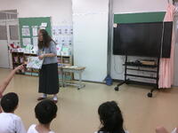 まずは1年生の「夏祭り」!前回は子供たち同士で楽しみましたが、今日は職員室・事務室の先生方を招待しました!