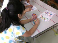 これを触ったり、握ったり、コップに入れたりして、感触や色を楽しみました!