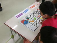 ねずみ型ロボットに命令を出して、スタートからゴールまでルールを守ってロボットを動かす学習です。