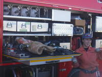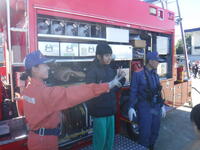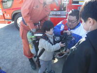 普段は見れない、消防自動車の中を見せていただいたり、身に着けるものをお借りしたり、貴重な経験ができました。
