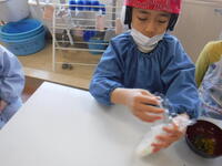 作った経験もある子は、慣れた手つきで「にぎにぎ」して、上手な形に作っていました。