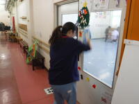 保護者の方に来ていただき、普段できない教室の窓掃除などをしていただきました。