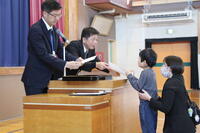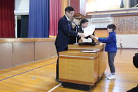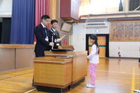 終業式の前に表彰があり、たくさんの児童が賞状をもらいました。