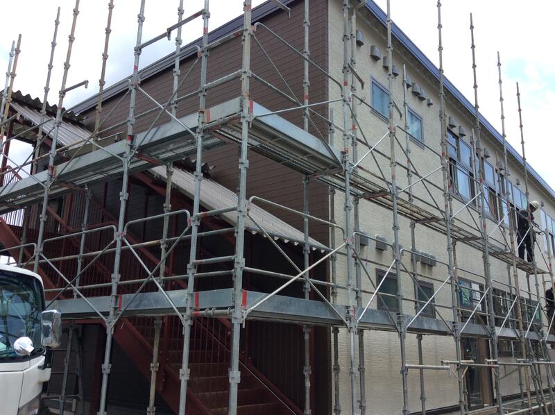 『須和田校舎建設の進捗状況 2』 投稿日時 : 2022/06/11 一般 6月9日(木)の午後に第二中学校グランドの建設中の校舎を見ますと、今まで取り付けられていなかった2階までの階段が取り付けてありました。着々と工事が進んでいることと、安全のための青いシートに覆われていました。そうしましたら、10日(金)には、青いシートが外され、足場の解体作業となり、夕方には、校舎が姿を現しました。