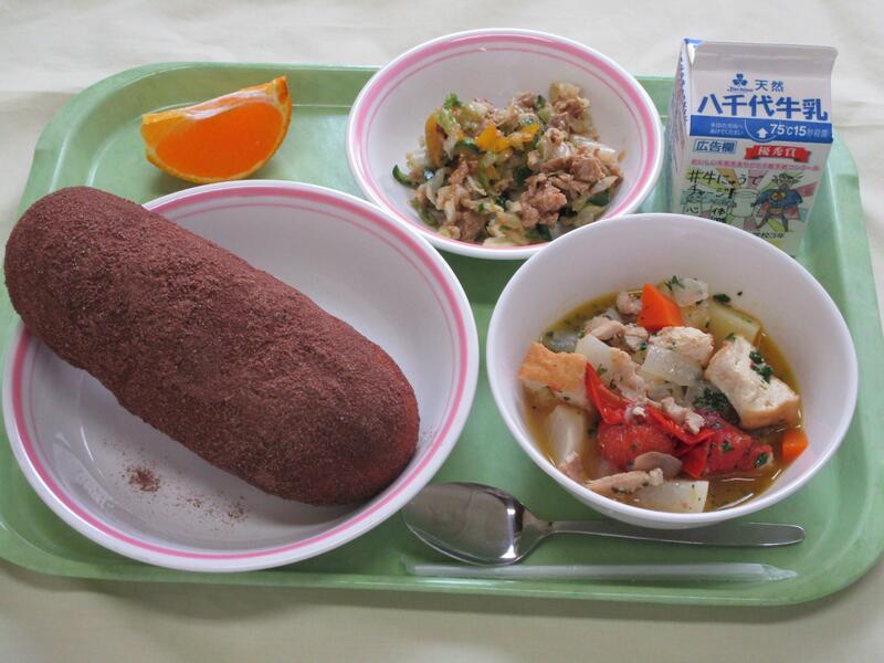 | コメント | 今日は高等部の先生、子ども達が食べられなくて残念ですね。どれもとても美味しかったです。特にキャベツメンチは、キャベツの自然な甘さが口いっぱいに広がり、衣もサクサクで美味しかったです。りんごも美味しい季節ですね。ごちそう様でした。 |