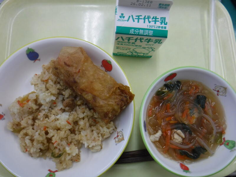 ・キムたくご飯 ・はるまき ・はるさめスープ ・牛乳 |