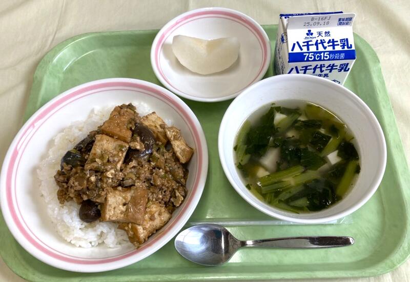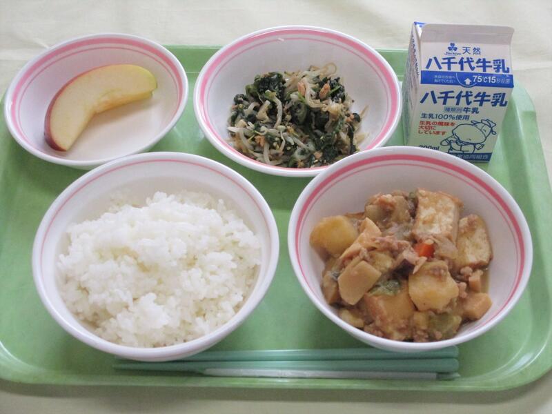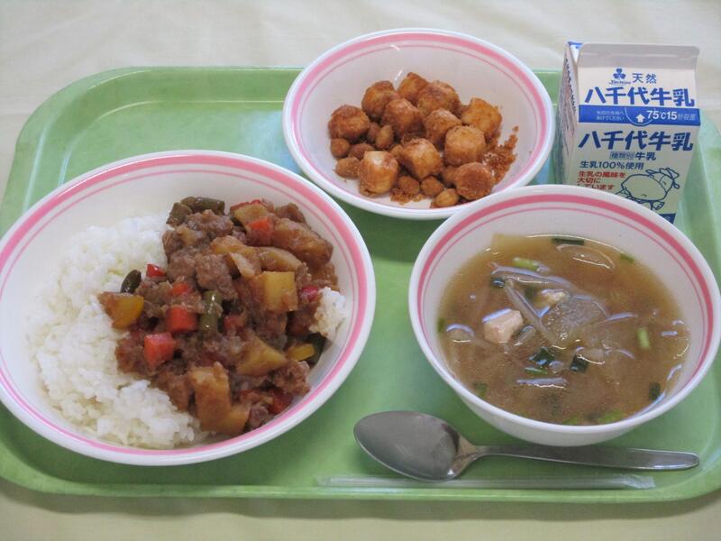 | コメント | ポークカレーはとてもおいしかったです。運動会で疲れた中学部のみんなは嬉しいだろうなと思います。サラダには梅干しのクエン酸が入っていることでしたが、すっぱすぎずに食べやすく、中学部のみんなはもちろん、金曜日で疲れた私たちの体にもとても効いている感じがしました。ごちそうさまでした。 |