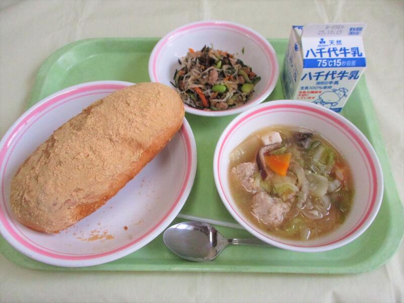 | コメント | きなこ揚げパンの揚げパンは、カリッとしていて、噛んだときに食感がよく、今まで食べた揚げパンの中で一番カリッとしていました。きなこも甘すぎず、程よい甘さでした。肉団子スープの野菜もしっかり煮込まれていて、やわらかくおいしかったです。 |