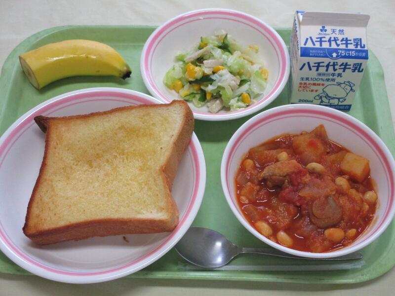 | コメント | さつまいもパンは、ほんのり甘くおいしいですね。栄養士の要望で給食向けに開発されたということで、実現するのはうれしいですね。千葉県産というと、ひじきパン、めざしパン、びわパン、梨パン…どれか実現できるでしょうか。シチューは具材の食感がよかったです。私の味覚ですが、もう少し塩味があるといいかなと思いました。ごちそう様でした。 |