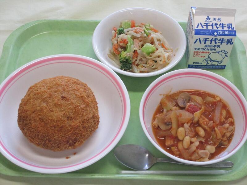 | コメント | 県民の日献立ということで、千葉県の味をおいしくいただきました。さつまいもも千葉県でとれたものということですが、甘くてとてもおいしかったです。びわゼリーのびわが大きく、うれしくなりました。ごちそうさまでした。 |