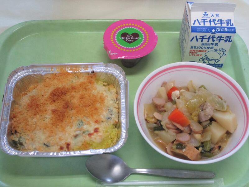 | コメント | お米、とてもおいしい。牛乳、すごくおいしい。豚肉、やわらかくておいしい。さつまいもとチーズを包み込んでおいしさ倍増。つみれだんご、にんじん、大根、長ねぎ、とってもおいしい。梨は果肉が感じられるゼリーで格別においしい。千葉県の食材ってすごいなと思います。生徒たちもそのことを感じながら食べてくれたらいいですね。食べるときに給食室からのお知らせを読むと思いますが、この情報が給食を楽しませてくれるとともに、知る楽しさを育むのかなと思います。 |