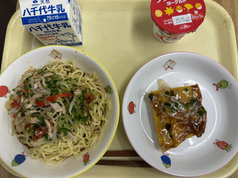 冷やし中華 あんかけたまごやき カップヨーグルト 牛乳 |
