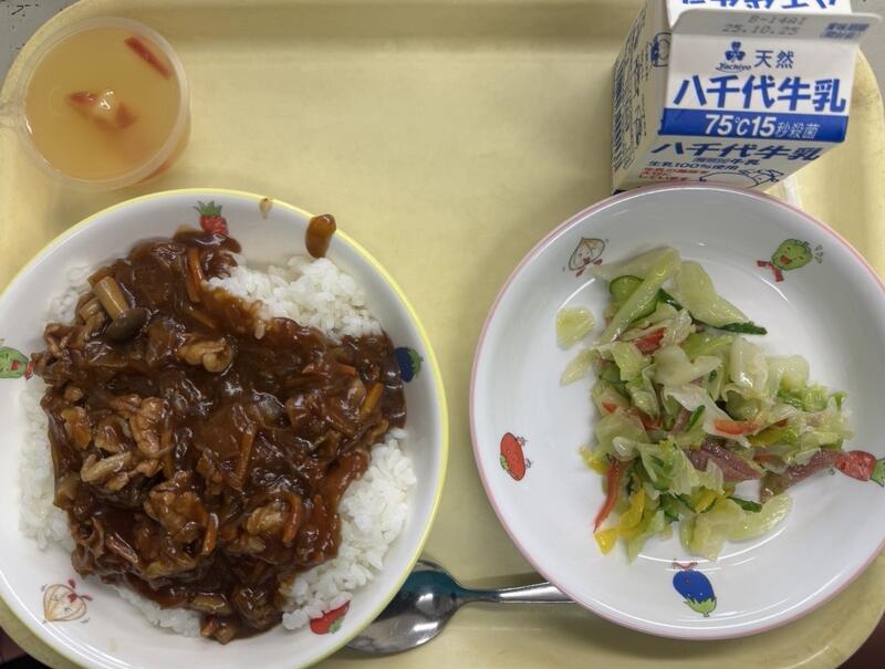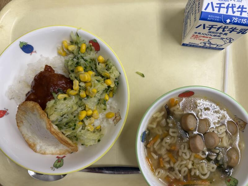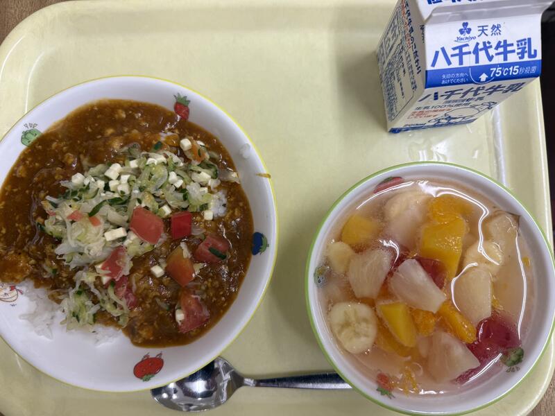 ごはん タコライスソース フルーツポンチ 牛乳 |
