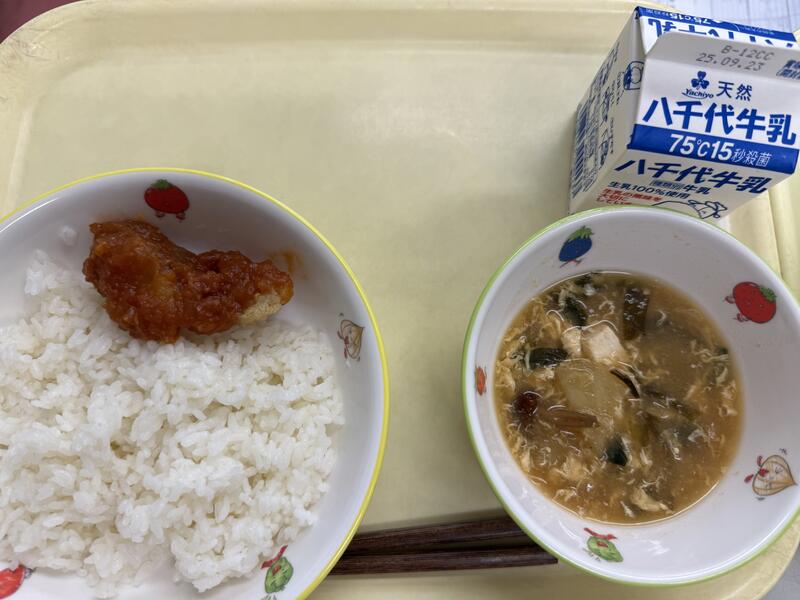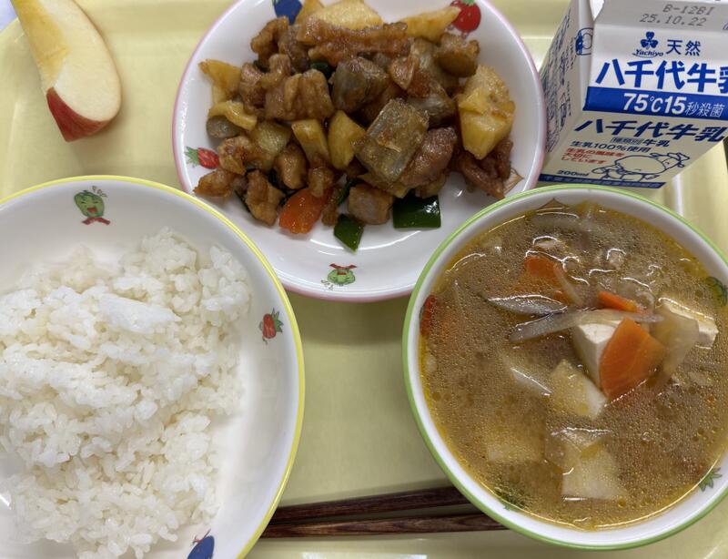| コメント | 今日の給食は、「さといものからあげ」です。さといもは、山でとれる”やまいも”に対して、里で作られることから”さといも”と呼ばれています。さといもには、炭水化物が多く含まれています。炭水化物は、おもに体の中でエネルギーになり、体を動かすパワーのもとになります。また、体温となる熱も作り出してくれます。 |