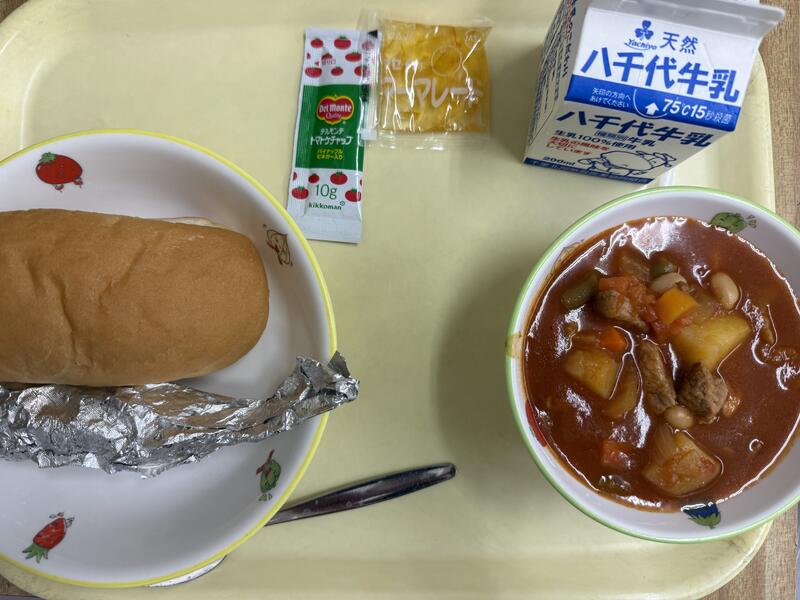 | コメント | 今日の給食は、フランス料理のひとつ「ポトフ」がでました。ポトフとは、フランス語で「火にかけた鍋」という意味があるそうです。野菜などをじっくり煮込む料理なのですが、材料は何でもよく、お家やお店、住んでいる地域で様々なレシピがあるそうです。本来は、スープと具材を別々に盛り付けて、スープはスープで味わい、具材はマスタードなどをつけて食べていたそうです。 |
