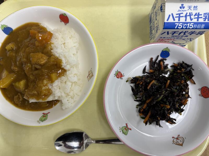 ごはん あきあじポークカレー ひじきのマリネ 牛乳 |