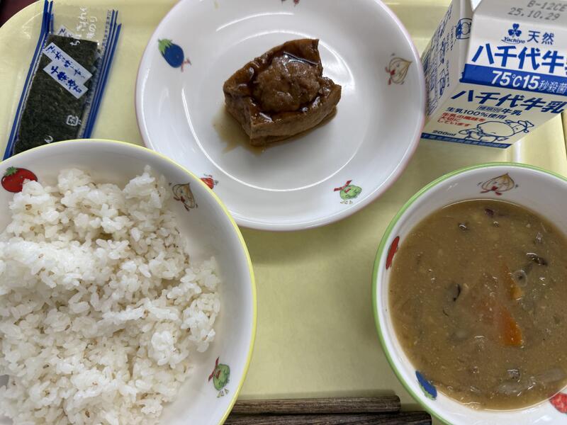 ごはん やきとりどんのぐ けんちんじる りんご 牛乳 |