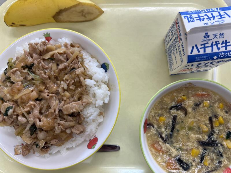 ごはん ルーローハンのぐ ちゅうかコーンたまごスープ バナナ 牛乳 |