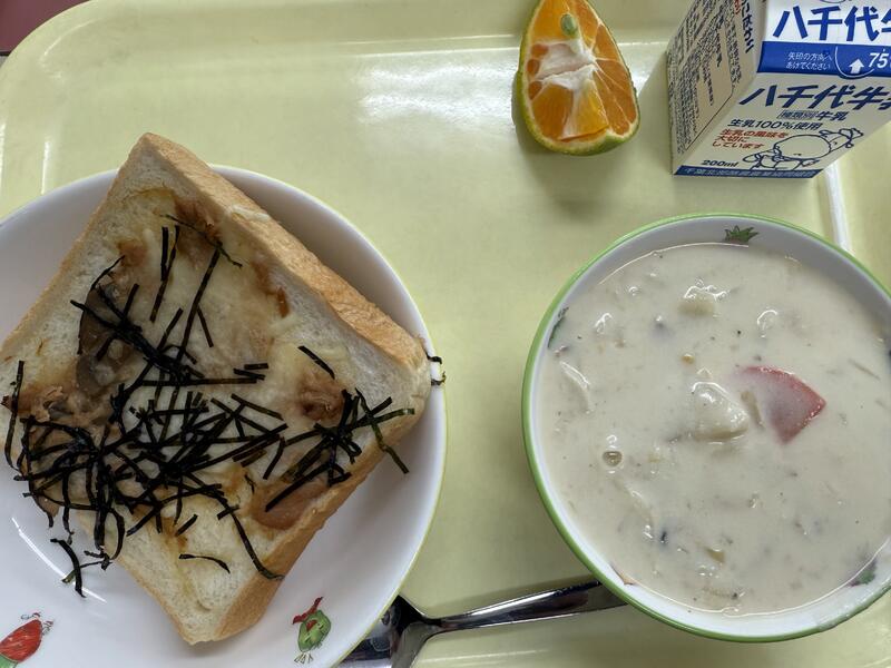 てりやきツナトースト おまめのシチュー はやか 牛乳 |