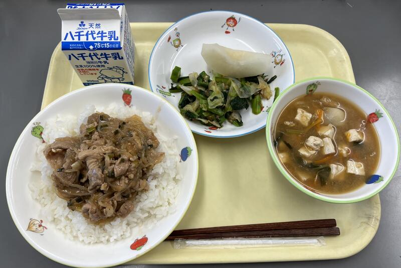 しんしょうがごはん なすのスタミナいため とうがんのすましじる ぎゅうにゅう |