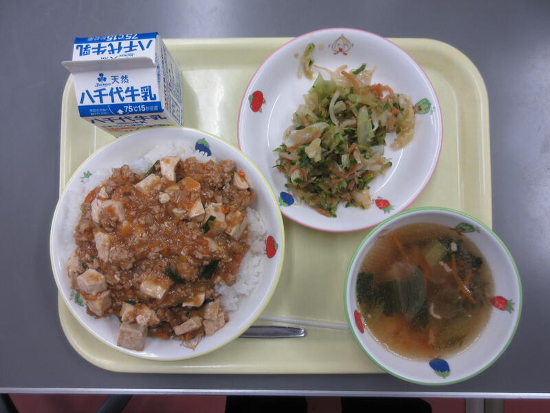 ごはん マーボーどうふ チンゲンサイのスープ くらげのサラダ |