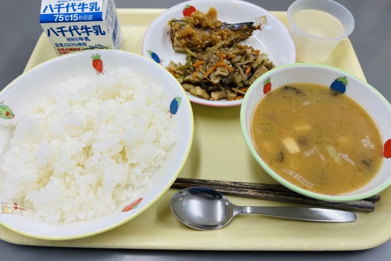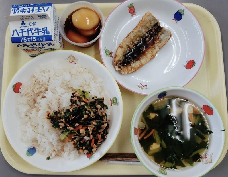 ごはん いわしのさんがやき わかめとツナ和え こんさいごまじる ぎゅうにゅう |