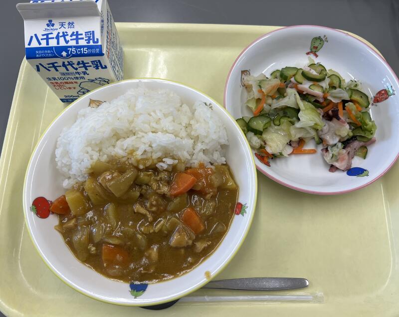 ごはん エッグカレー ヨーグルトあえ ぎゅうにゅう |