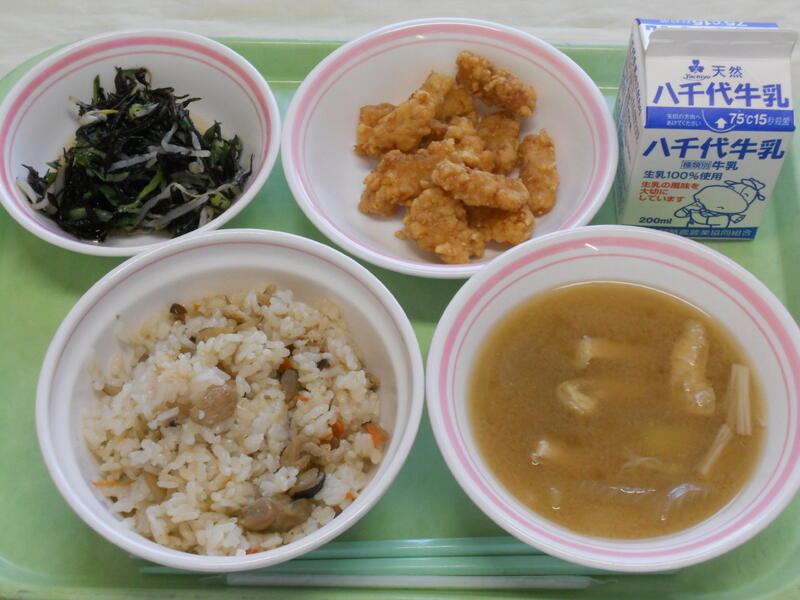 たけのこごはん めばるの竜田揚げ おかか和え かぶのみそ汁 牛乳 |