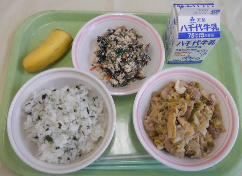 | コメント | 五目白和えはほんのり甘さがあり、とても美味でした。ひじきと豆腐をおいしく食べられるメニューですね。すきやき煮の白菜も、やわらかさもある中にシャキシャキする食感もあり、汁を吸った味も最高においしかったです。生徒達もビタミンCを多く摂り、積み重ねることで健康に過ごせるでしょう。ごちそう様でした。 |