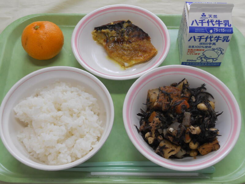 ごはん 鯖のカレー風味焼き 大豆の磯煮 みかん 牛乳 |