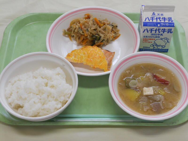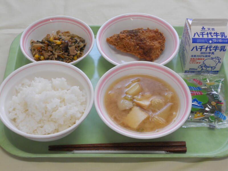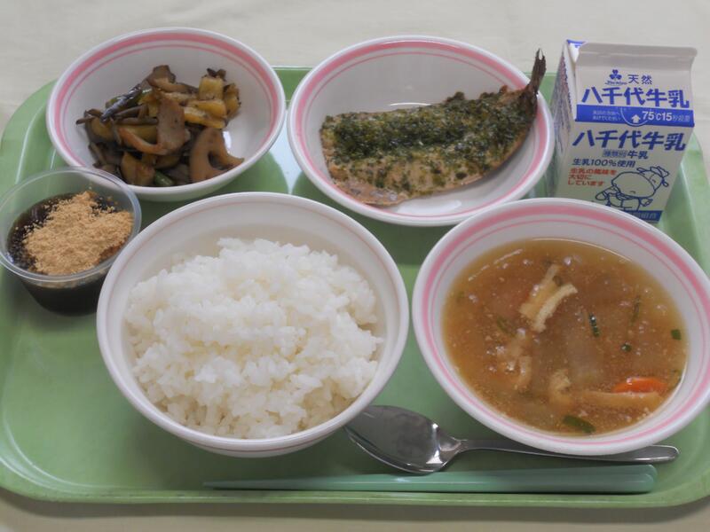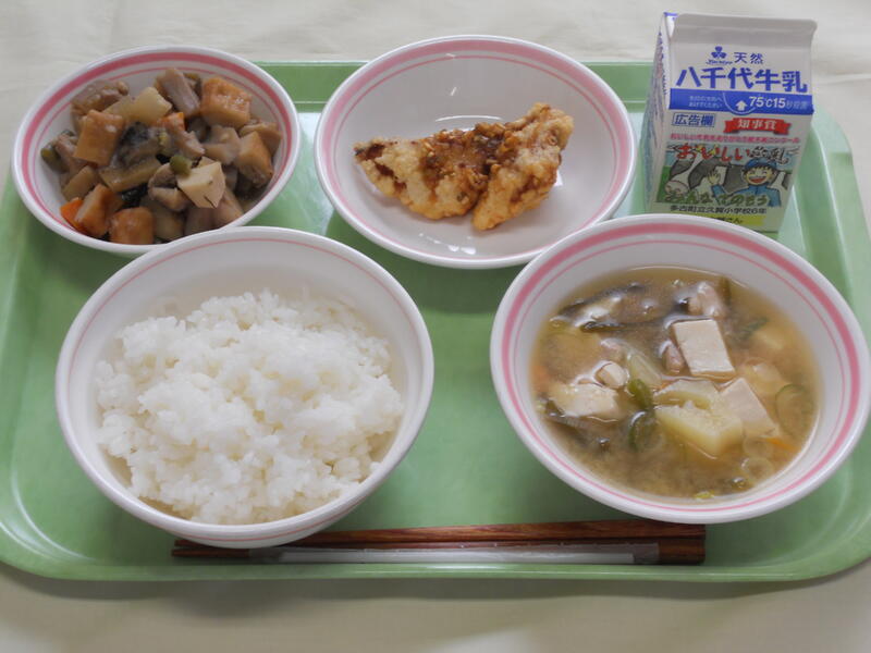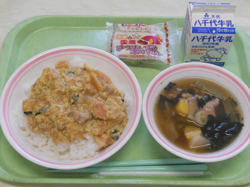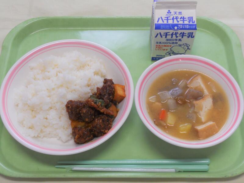 | コメント | 豚肉のさつまいもチーズ巻きは、豚肉とさつまいもの組み合わせが一口食べると、おいしい!というメニューでした。豚肉の甘辛さとさつまいもの甘さとが、よく合っていました。ボリュームもあり、生徒たちも大満足だったのではと思います。つみれ汁もよいおだしが出ていて、おいしかったです。ごちそうさまでした。 |