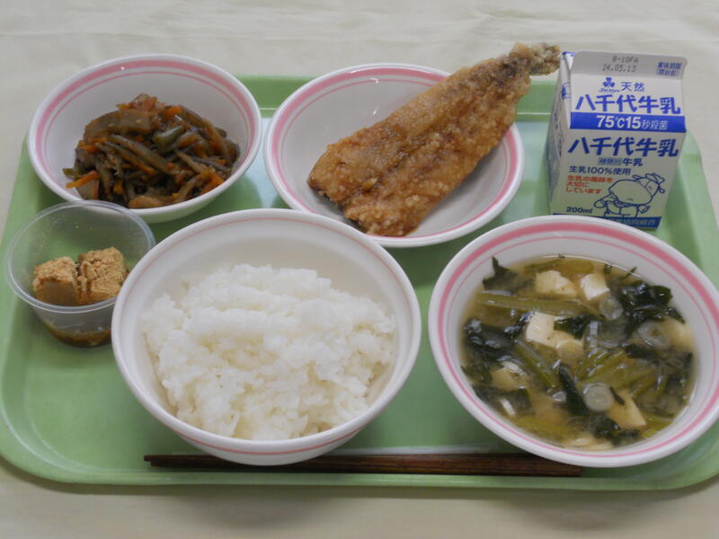| コメント | かつおのフライは、歯ごたえもあり、とてもおいしかったです。もしかしてカツオは鯉のぼり?しらたき炒めのしらたきは吹き流し?柏もちもあり、端午の節句メニューを堪能させていただきました。ごちそうさまでした。 |