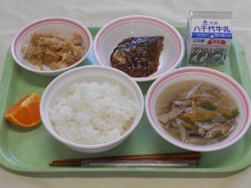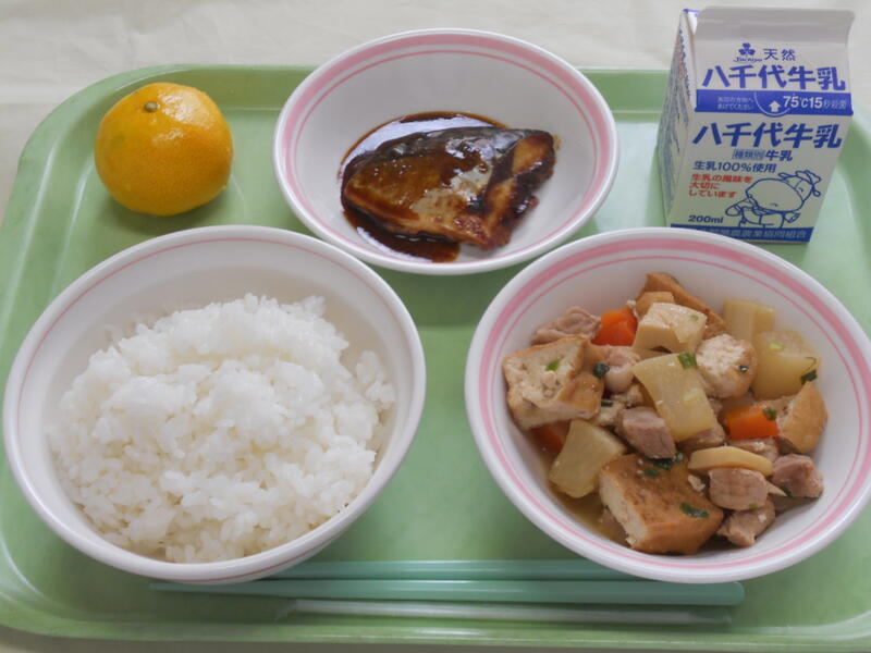ごはん 鯖のみそ煮 豚肉と大根のはちみつ煮 みかん 牛乳 |