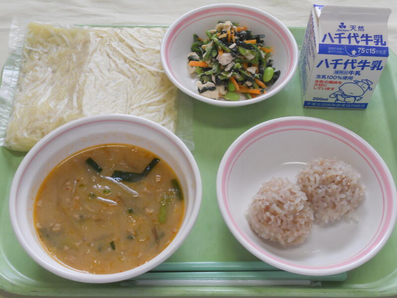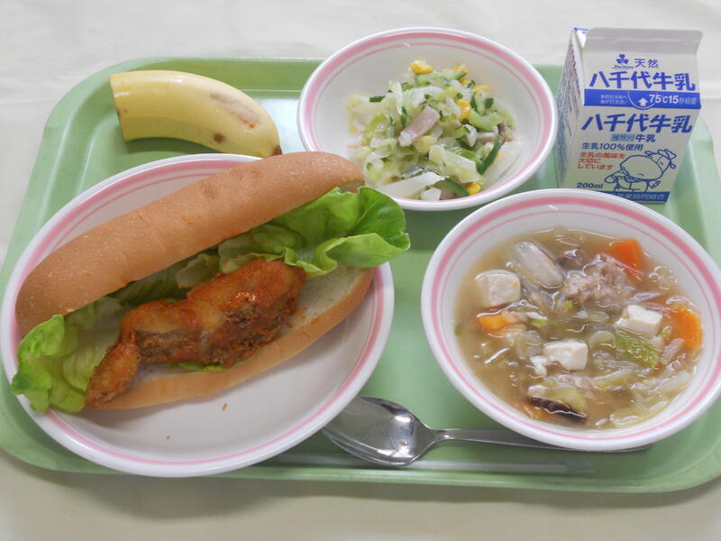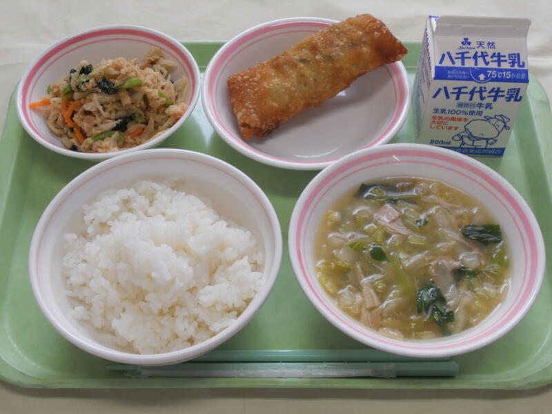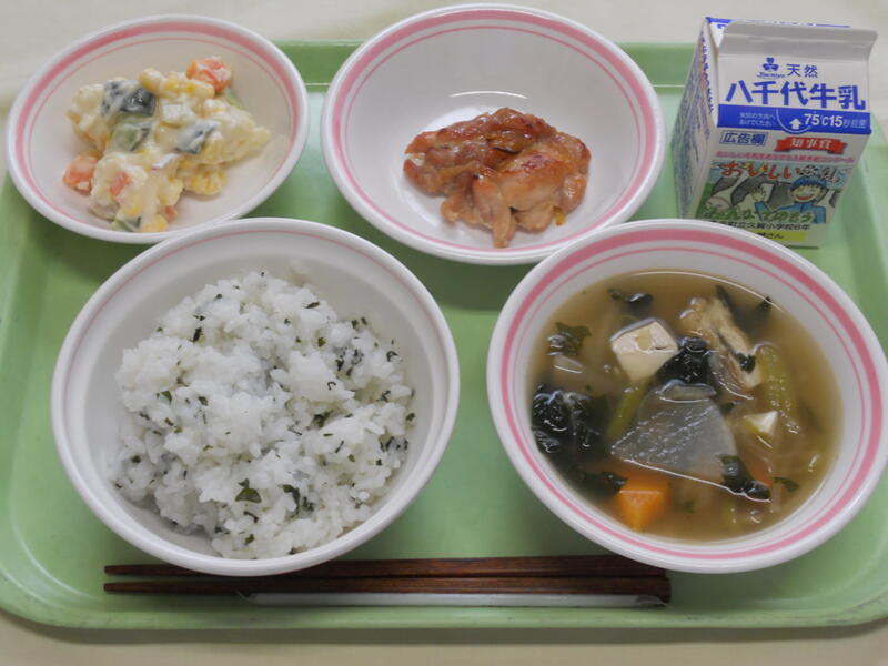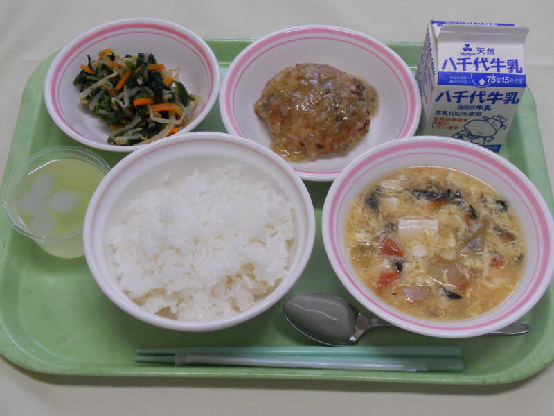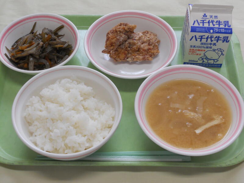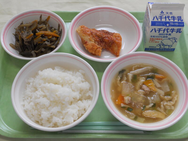 | コメント | 鶏の唐揚げは、リクエストが多いのがわかります。とてもやわらかジューシーで、おいしかったです。もやしのナムルも、シャキシャキと歯ごたえよく、おいしくいただきました。沢煮椀は、私が今まで食べた給食の沢煮椀の中で最もおいしかったです。だしもとてもよく出ていました。お正月のお雑煮にもなりそうですね。ごちそうさまでした。 |