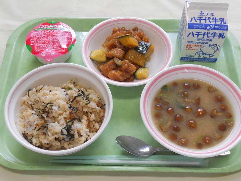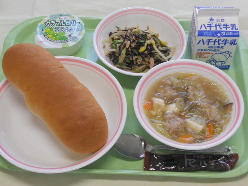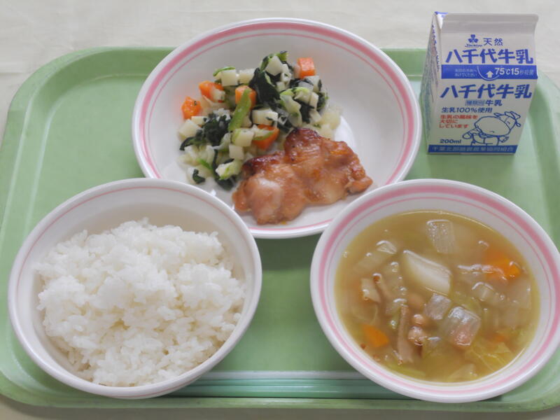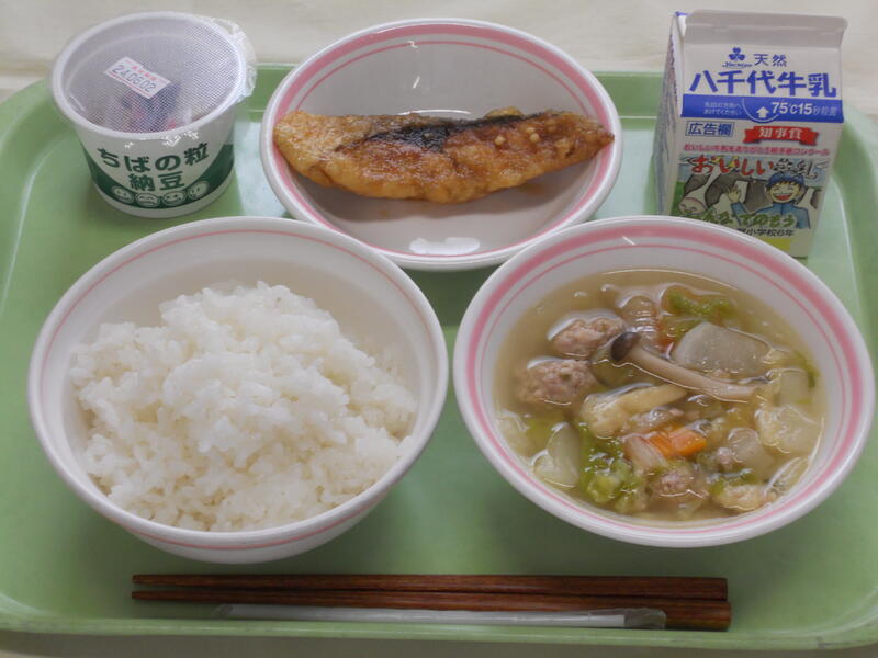 | コメント | おはなし給食の「なっとう」でした。中粒ですが、しっかりかみごたえのある納豆でとてもおいしかったです。鶏団子ちゃんこ汁は、白菜や春雨など具だくさんで、お団子にもしっかり味がついていておいしくいただきました。ごちそうさまでした。 |