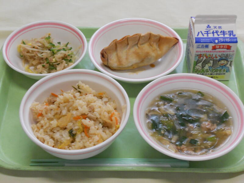 キムタクごはん 焼き餃子 切干大根のナムル 春雨スープ 牛乳 |