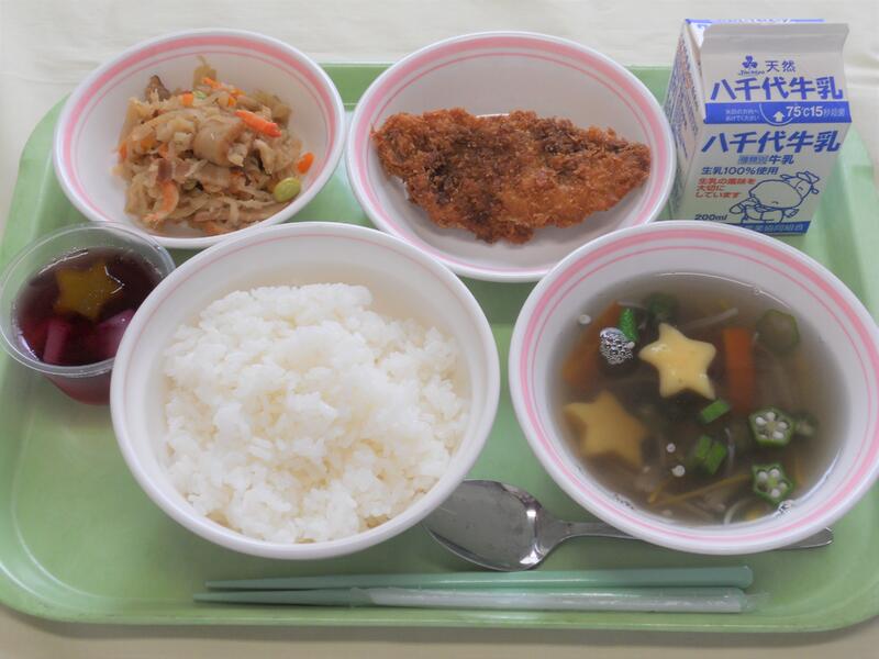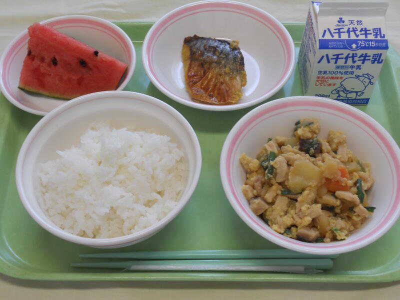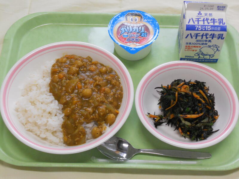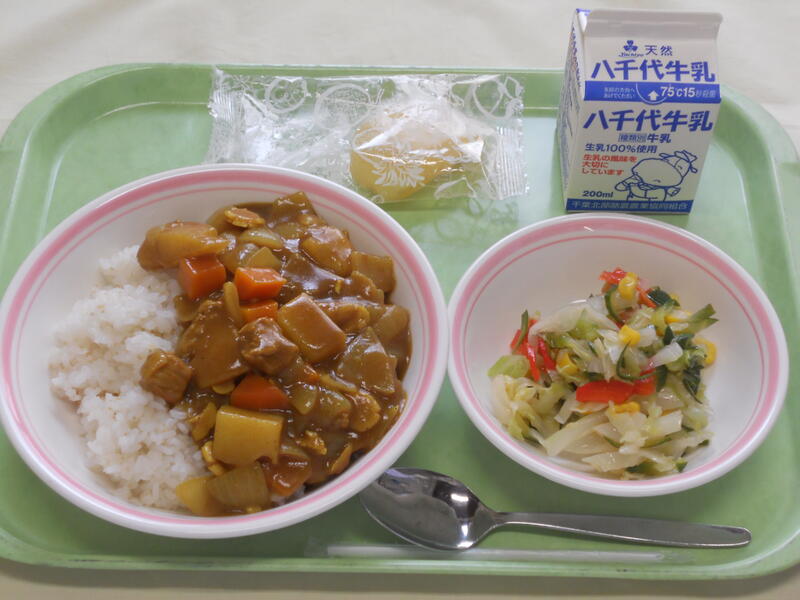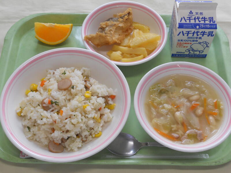 | コメント | 中学部のグリンピースのさやむき、見たかったです!小学部に行っていたので…。食べる時、食べた後の感想を聞きたいですね。今日は見た感じが「黄色!」という感じで、夏を思わせてくれました。カレーピラフのピリ辛、キャベツスープの甘みでおいしくいただきました。ごちそうさまでした。 |