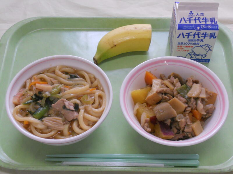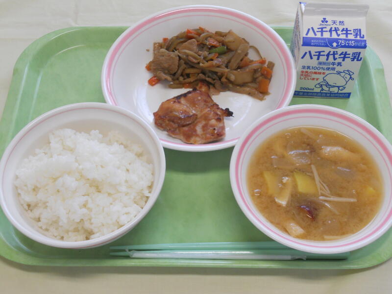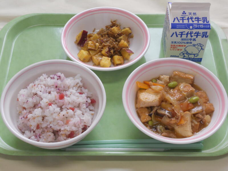 ごはん 鶏の照り焼き 五目きんぴら さつま芋のみそ汁 牛乳 |