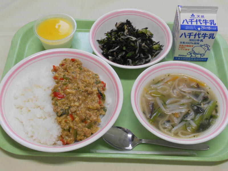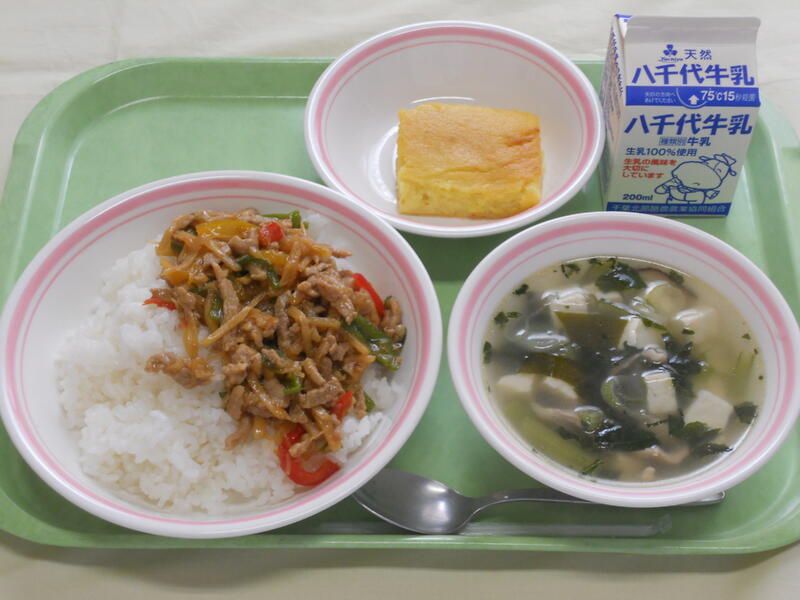| コメント | チンジャオロースは、丼にすると食べやすいですね。食具もスプーンにしていただけたのが良かったです。わかめスープは豚肉が入っていたので、コクがあって食べごたえもあって、成長期の子ども達も喜ぶなと思いました。 |