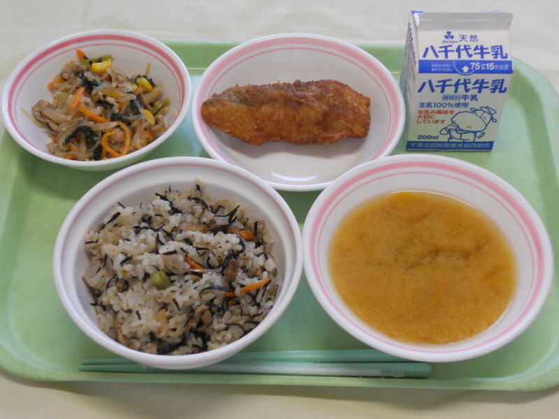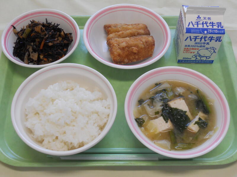 ごはん めばるのピリットジャン 筑前煮 茎わかめのみそ汁 牛乳 |