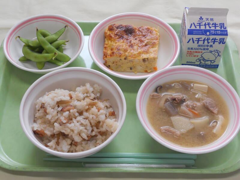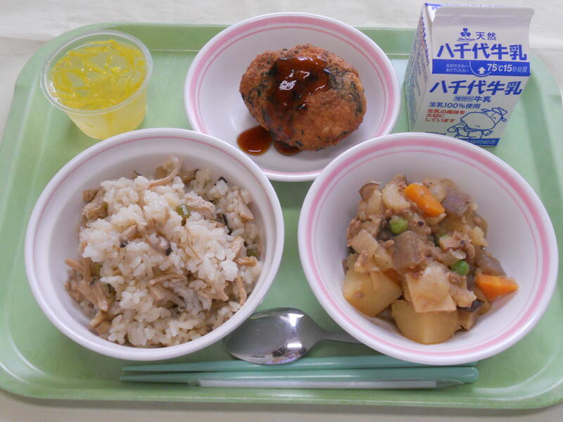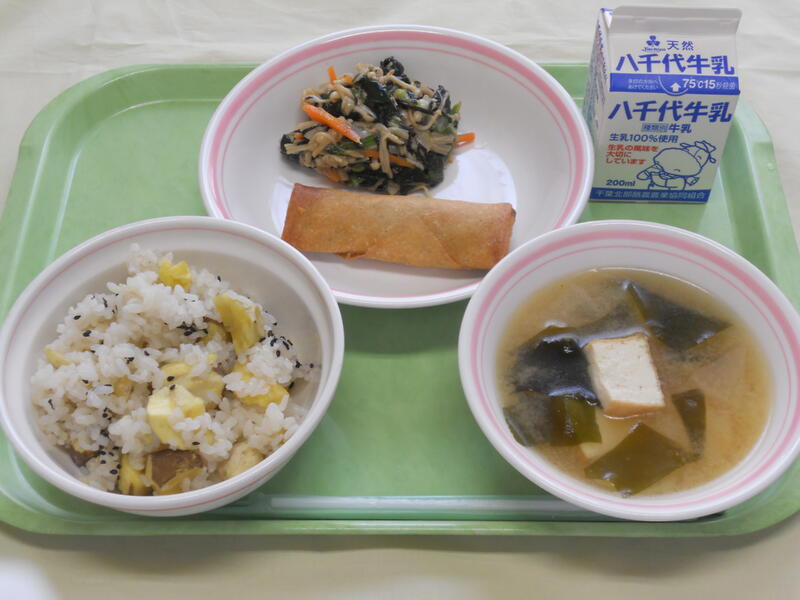 | コメント | 秋の味覚いっぱいのメニューでした。さつまいもと塩昆布ごはんは、さつまいもの甘みと塩味がマッチして、おいしかったです。鮭のみそマヨネーズ焼きも、身がやわらかく、味もしっかりついてごはんとも合い、おいしくいただきました。ごちそうさまでした。 |