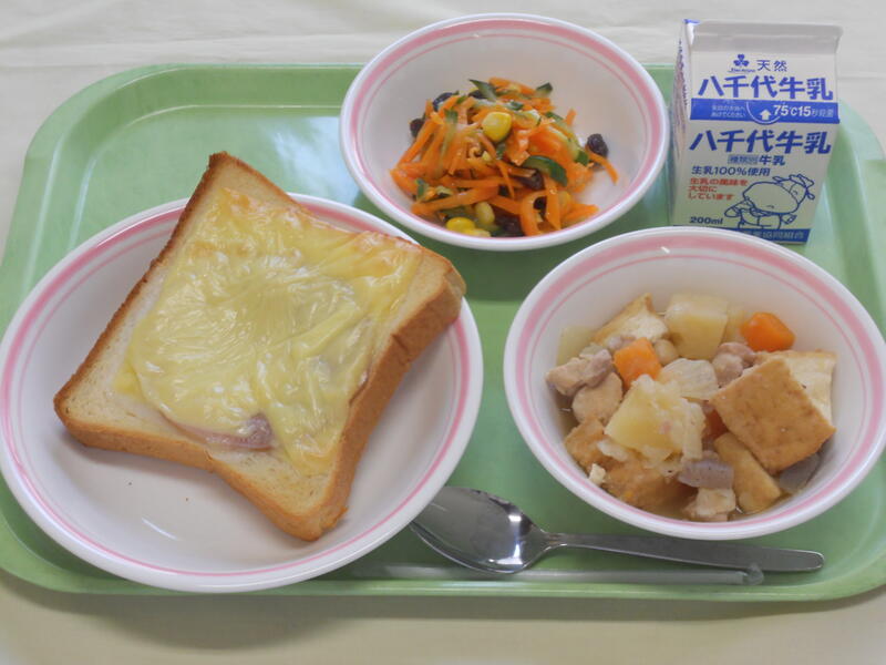 ごはん 鶏肉のマーマレード焼き コロコロポテトサラダ 根菜けんちん汁 牛乳 |