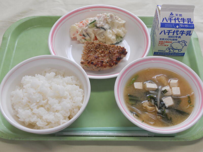 ごはん 松風焼き おからポテトサラダ もやしのみそ汁 牛乳 |