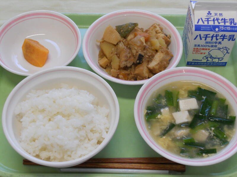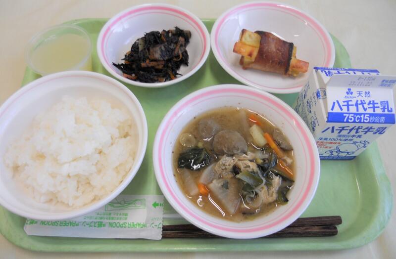 ごはん さつまいものチーズ巻き ひじきの梅煮 千葉っこつみれ汁 梨ゼリー 牛乳 |