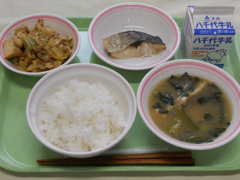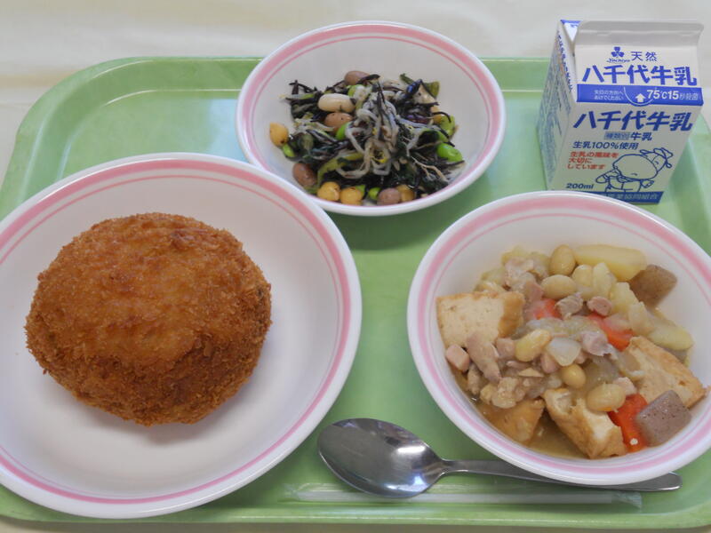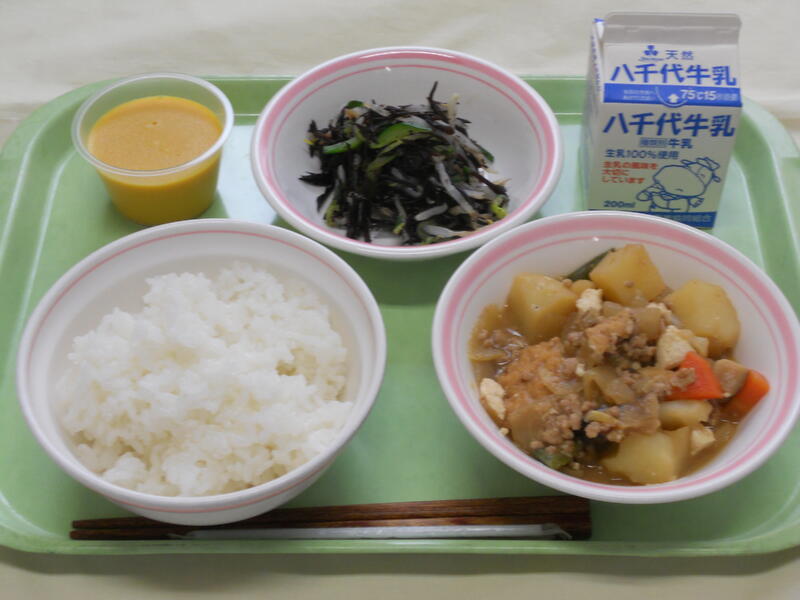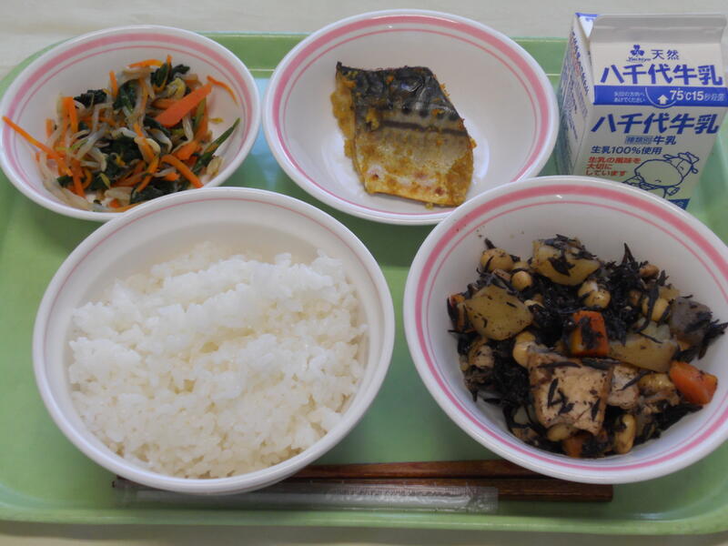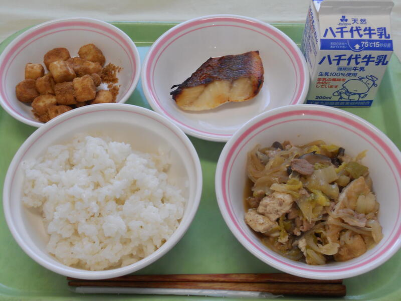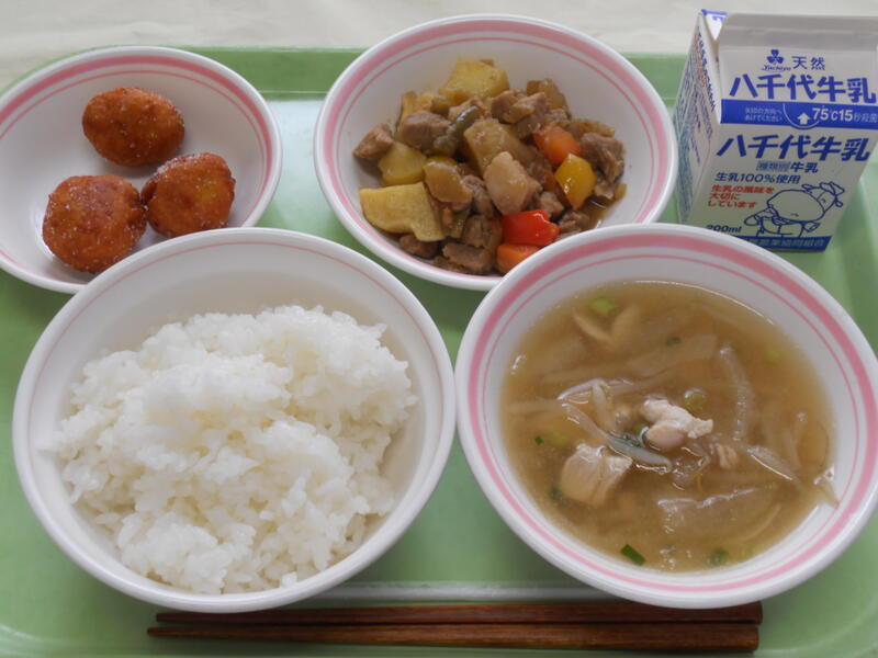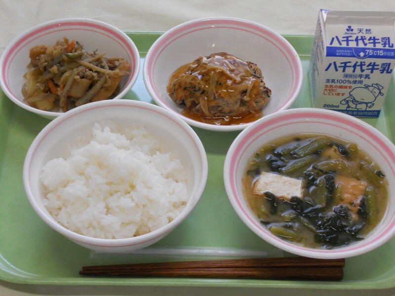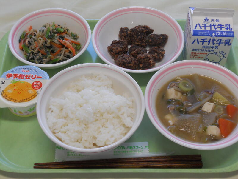 | コメント | 鶏の照り焼きは、下味がしっかりとついていて、こんがりと焼けていました。ひじきとツナの炒め煮は、ひじきとツナの味をそれぞれ感じることができ、みんなにとっても食べやすい一品だと思いました。生揚げとじゃがいものみそ汁は、いつもより大きめのじゃがいもが入っていて、食べごたえがありました。おいしくいただきました。 |