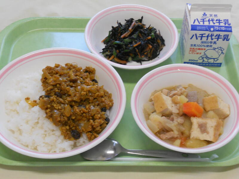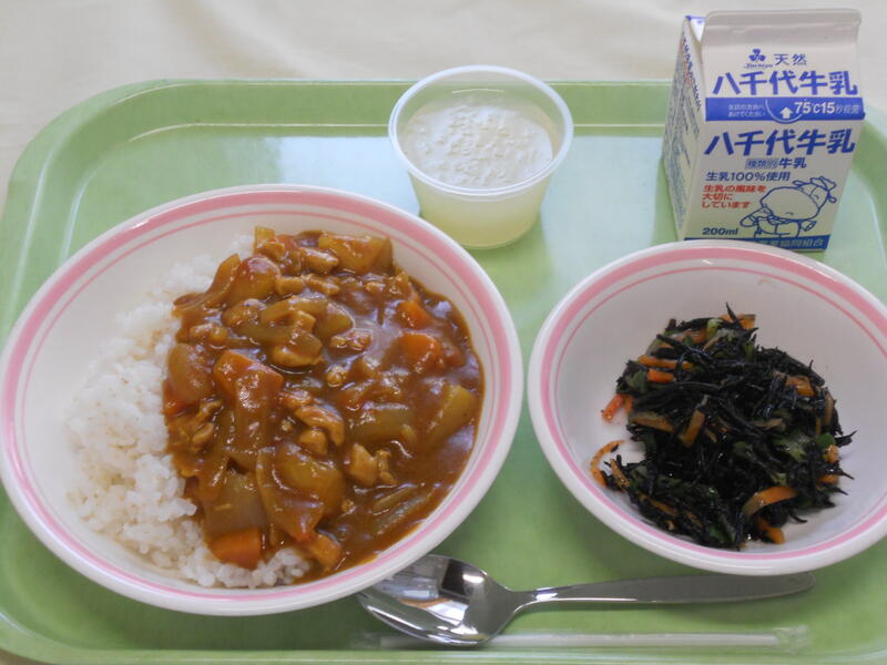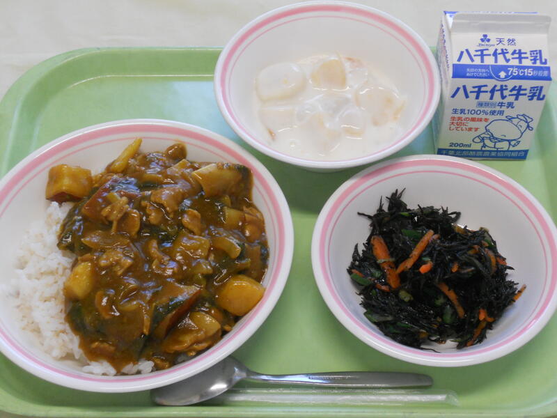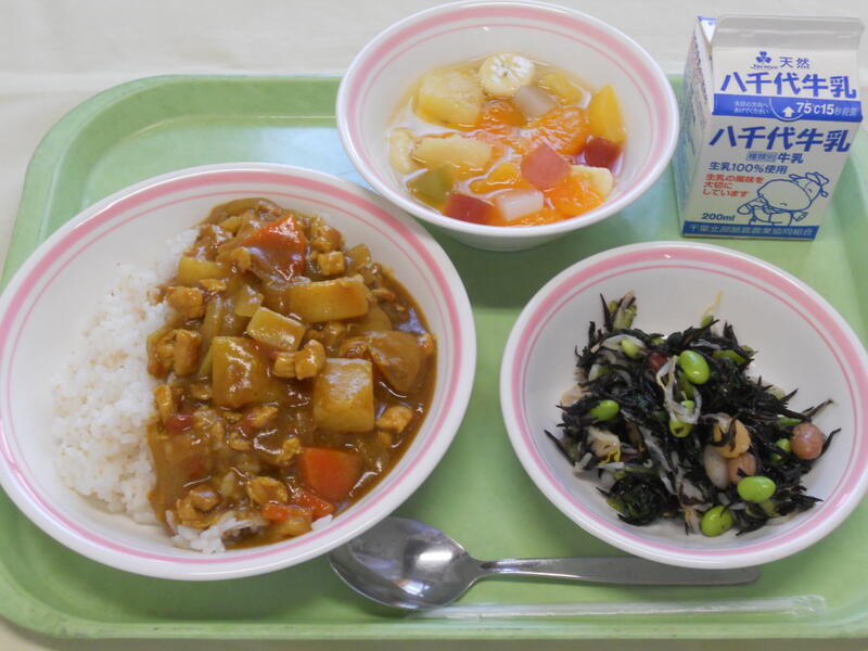 アマランサスごはん チキンカレー ひじきのマリネ 梨ゼリー 牛乳 |