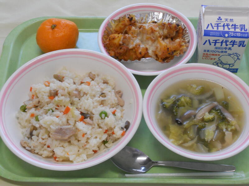 | コメント | さんまごはんは、蒲焼きにしたさんまが混ぜられており、小口大にカットされ食べやすく、おいしくいただきました。大豆とひじきの炒り煮は、れんこんも入っていて、食感もよかったです。白菜かきたま汁は、出汁の風味を感じながら、白菜、かまぼこ、人参など多くの具材が入り、とてもおいしかったです。ご馳走様でした。 |