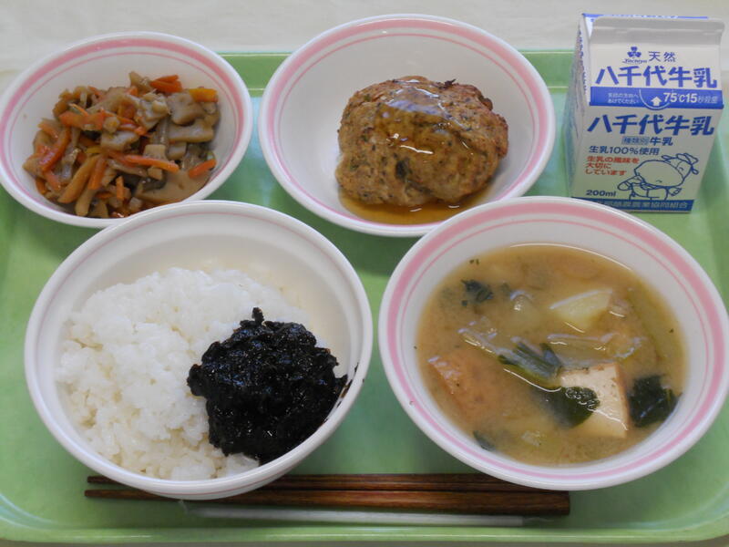 | コメント | あじバーグは、たっぷりあじが入り、おろしソースと味がマッチしてとてもおいしかったです。ピリ辛ごぼうごはんは、少しピリッとしますが辛すぎず、子ども達の好きな味つけだと思いました。キャロットゼリーは少しうす味でしたが、のどごしよく、さっぱりといただきました。ごちそうさまでした。 |