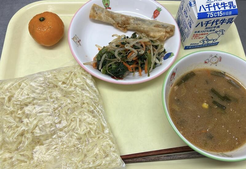 みそラーメン ナムル ししゃものパリパリあげ れいとうみかん 牛乳 |